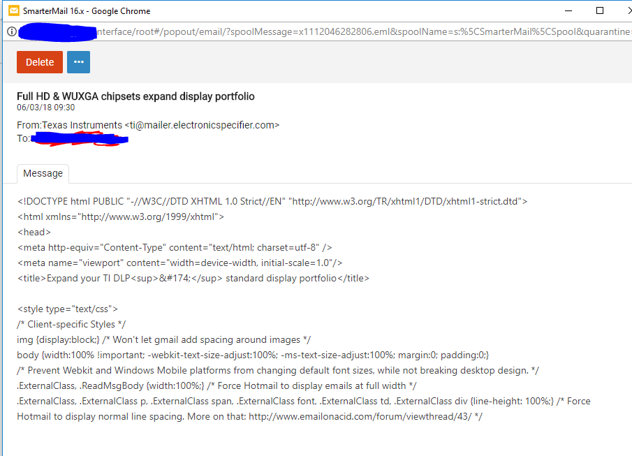 Preview of some HTML mails show only the HTML code (RAW content?), not the text into email and it's unreadable.