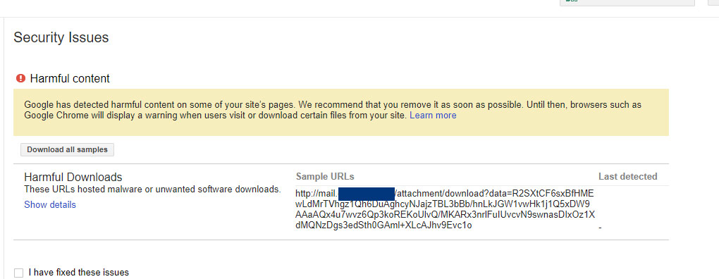 We have a warning in webmaster tools that there is a malware file on one of our clients email accounts.