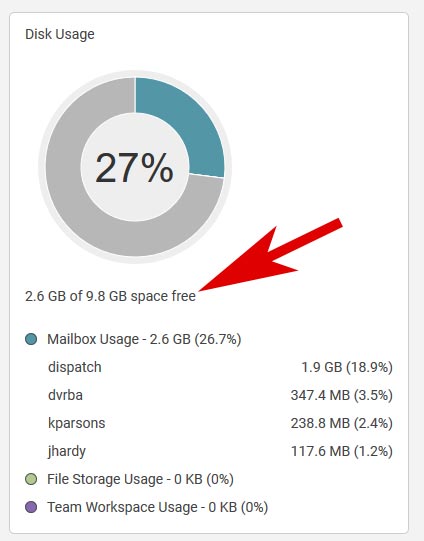 There's a typo on the Domain Reports > Overview page concerning disk usage.  In the following image it says "2.6 GB of 9.8 GB free", but it should say "2.6 GB of 9.8 GB used".