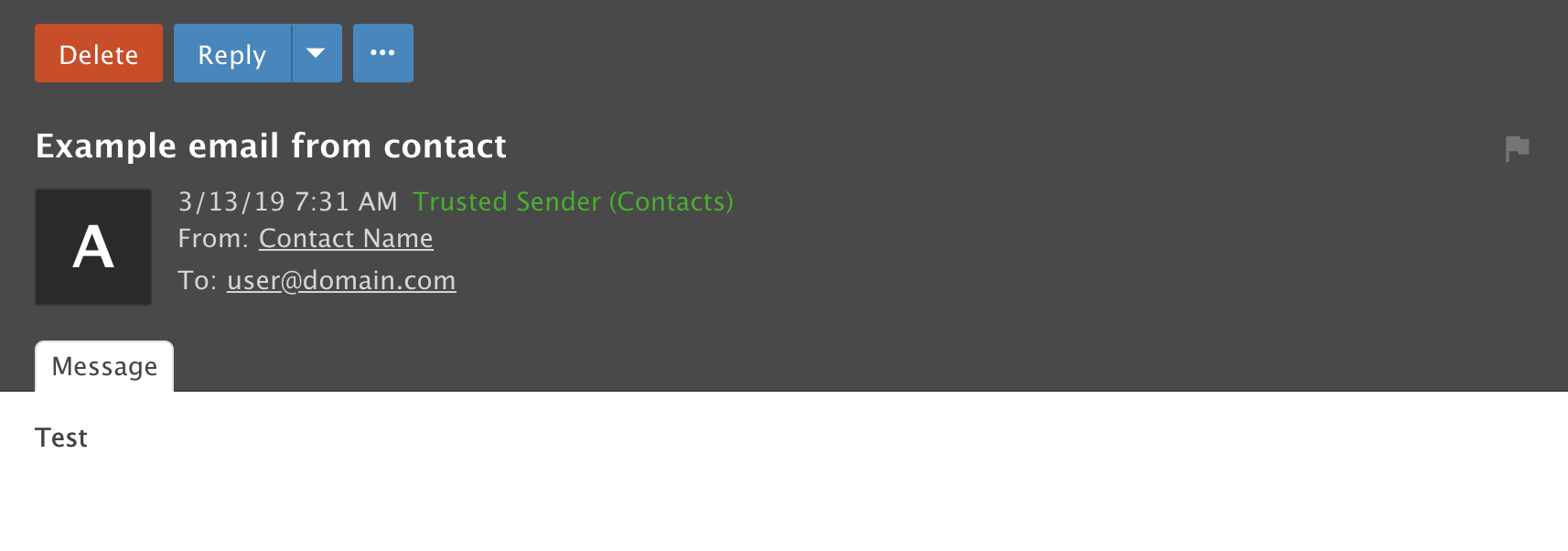 I think there should also be a visual warning when the email did not really come from the person in the From field (e.g. when there is a SPF fail). If the systems displays any green "Trusted" text in an email that was spoofed and is in fact SPAM/phishing, it`s a recipe for disaster.