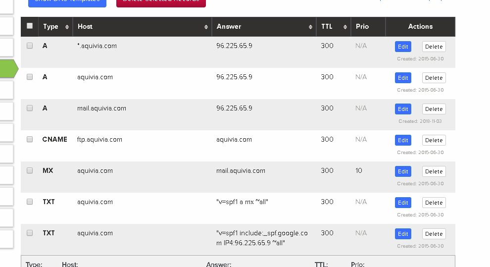 Here are my DNS records at name.com, where my domain "aquivia.com" is registered: