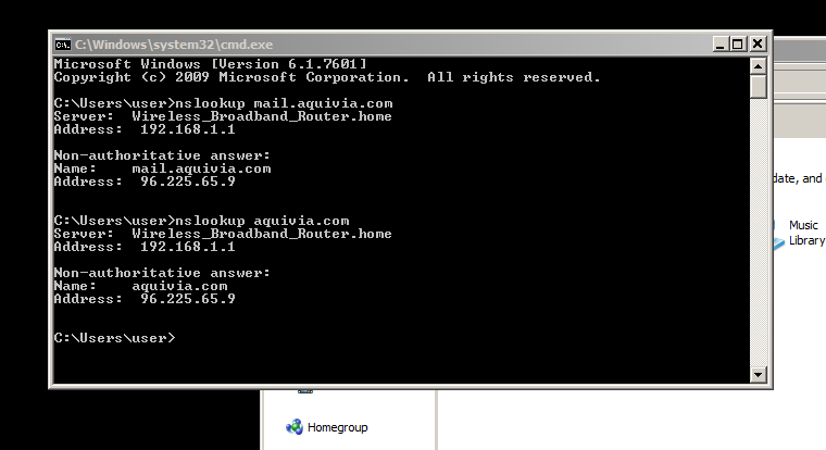 Here is nslookup from the mailserver, the output is the same from another of my home computers:
