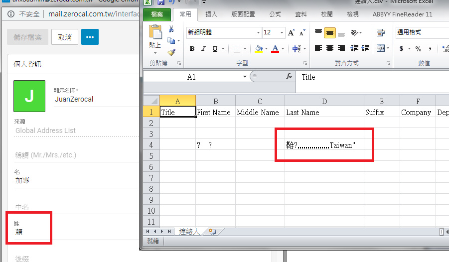 While I exported the Address Book to CSV file, I found the double byte characters are all messed up. (I am using Traditional Chinese).