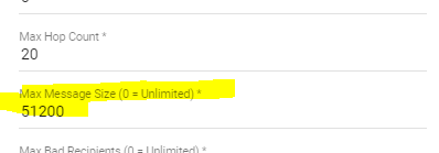 Hmm interesting, I just did a quick telnet to our SM 16 test server and I got back the correct value. After checking the code we do dynamically write that variable based on MaxMessageSize if it's greater than 0. Can you verify what the value is for that setting in your SMTP settings?