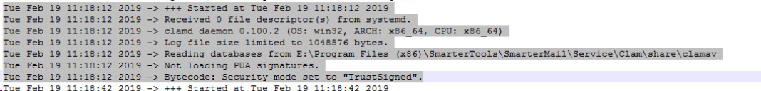However, restarting your service even if ClamAV was not restarted should still function. SmarterMail would see it's already running and try to connect to it. So to answer your question you shouldn't have to worry about rebooting ClamAV when restarting SmarterMail, you will lose communication with ClamAV but on boot it should reconnect. It will only do this reconnection when it goes to scan an email, so if you don't see it immediately reconnect it could be that it has not yet started processing a message.