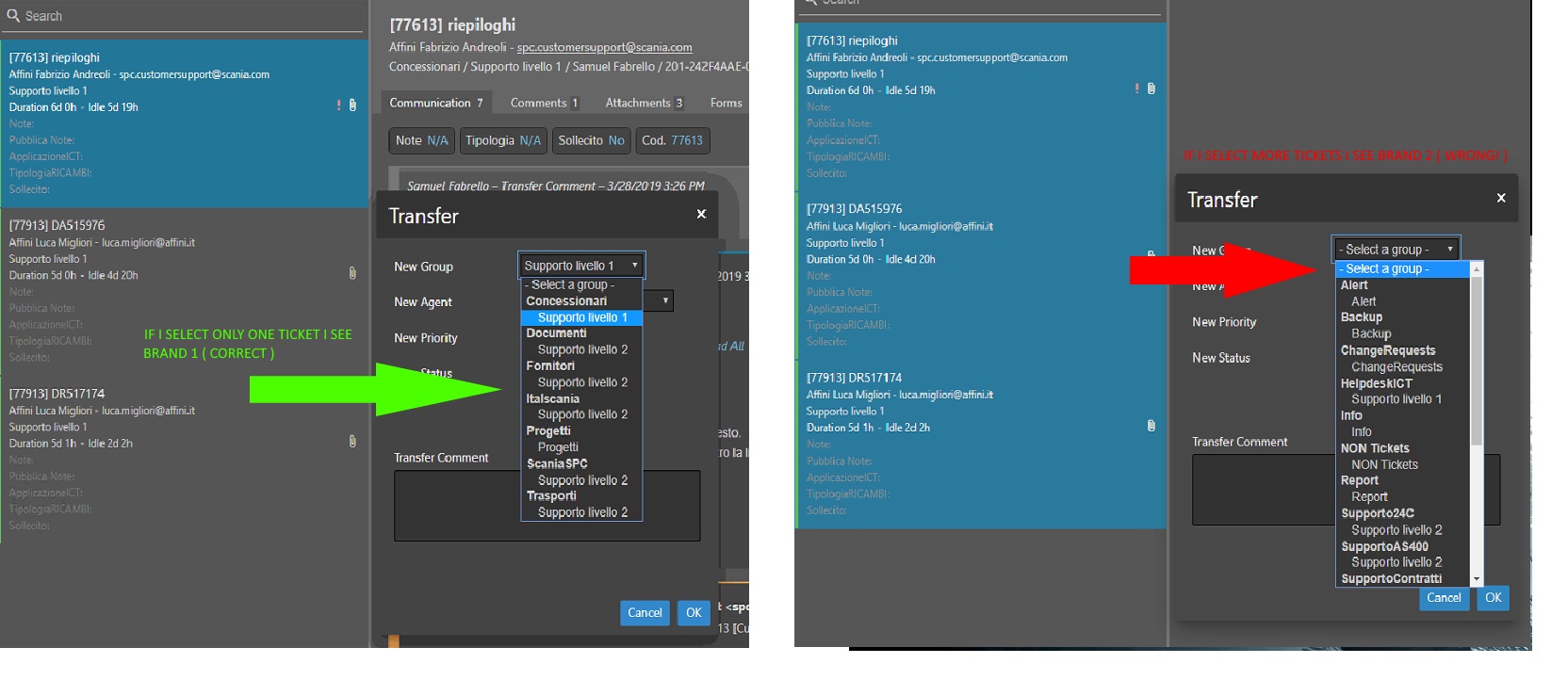 Administrators as well as any agent assigned to groups in multiple brands, will be able to see tickets in the queue from both brands. To see only one brand in the queue, the agents can select a specific brand from the brand selector at the top of the navigation pane.