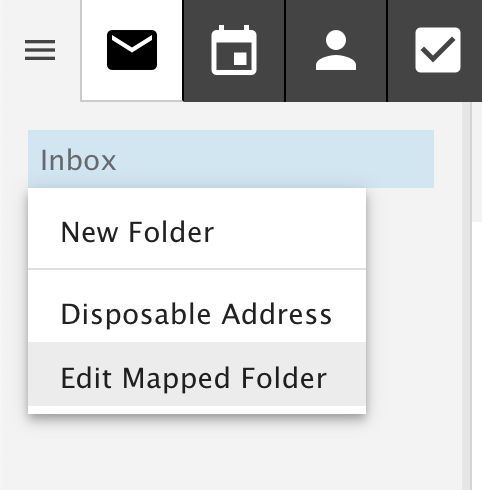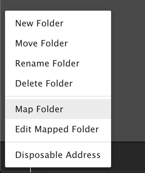 The users you share the folder with will then go to their Email section, click on the hamburger menu in the bottom left corner, and click Map Folder.