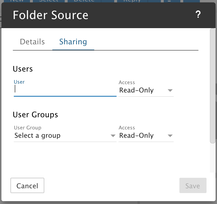 Then, click on the Sharing tab and add the users and/or User Groups that should have access to the folder.