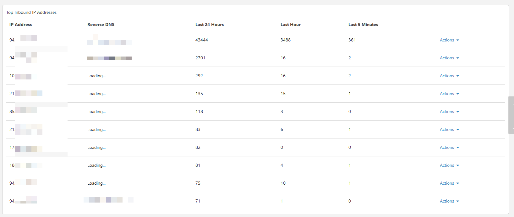 "Top Outbound IP Addresses" is always OK (except some with N/A but I guess it means there is not reverse DNS for these)
