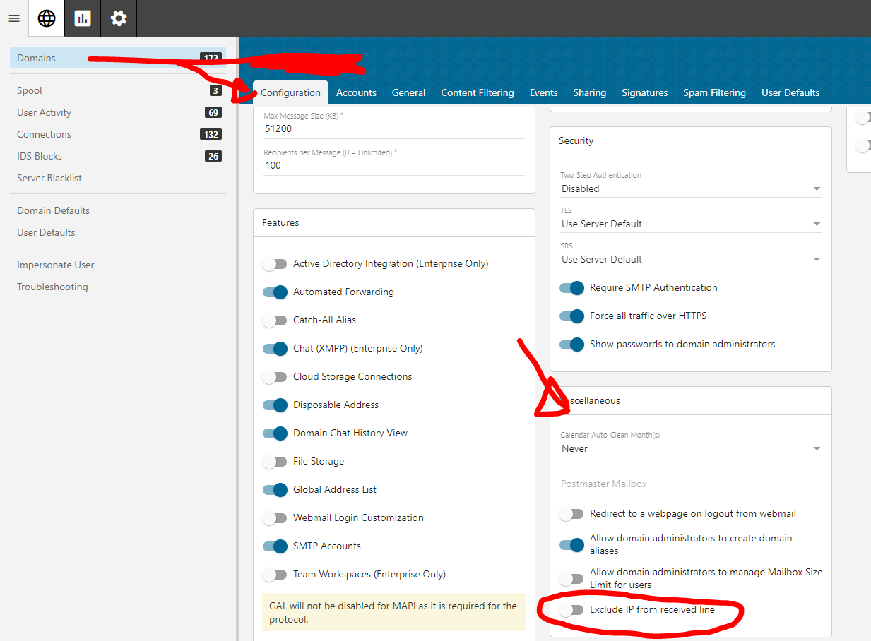 Is there a way to hide/delete from the header the origin IP from the sender so it's not scanned on receivers anti-spam ? There is way to only send the SMTP Server's IP ?