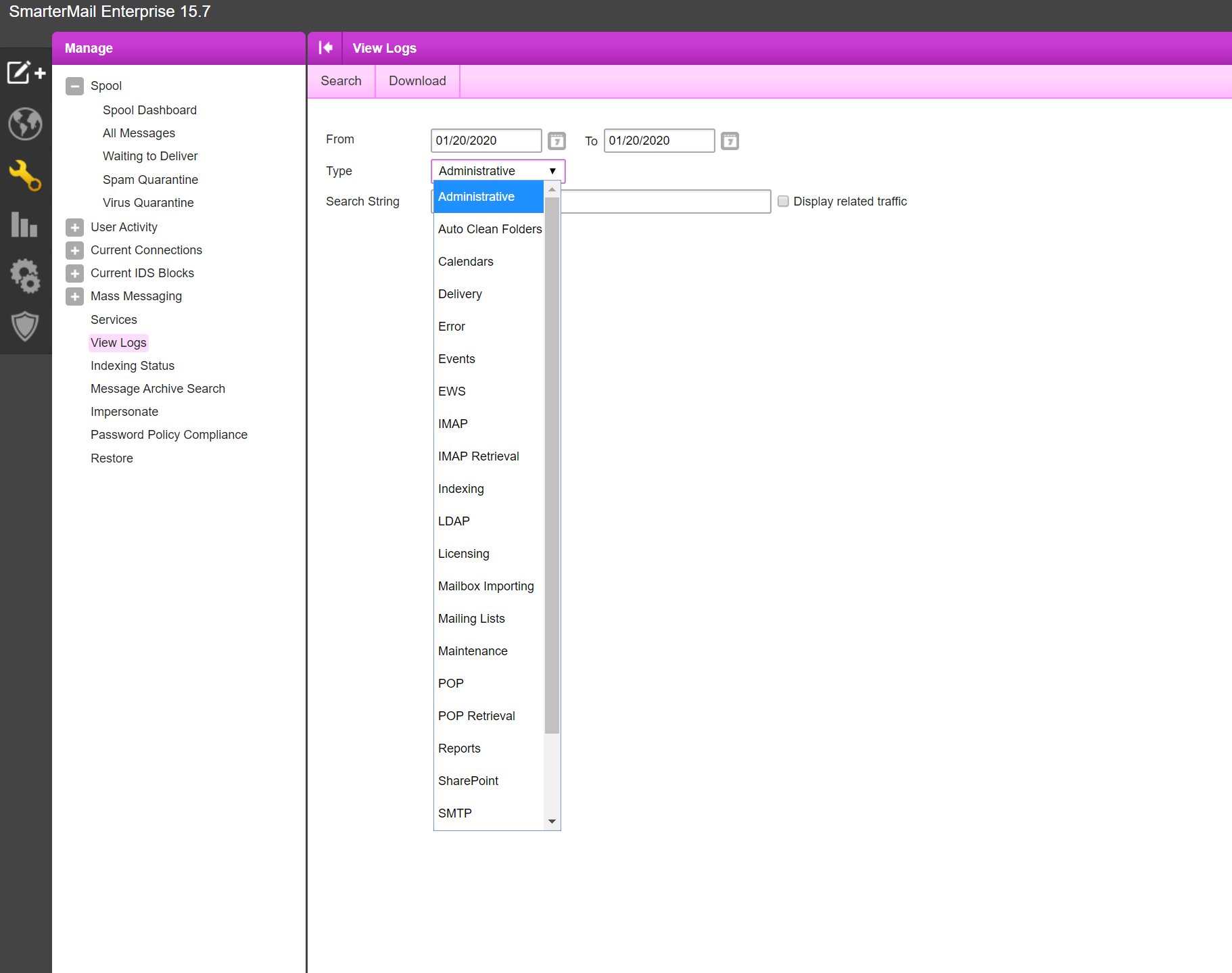 Are u looking for this? C:\Program Files (x86)\SmarterTools\SmarterMail\MRS\App_Data\Logs