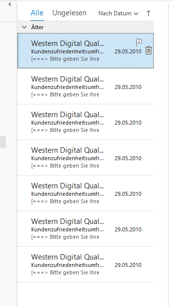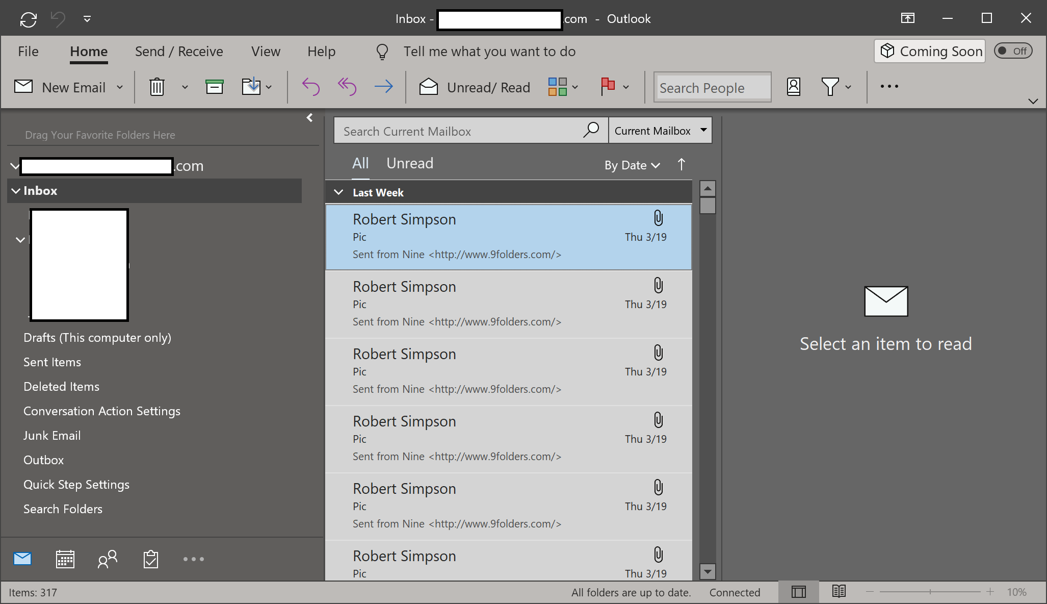 I then come back into Outlook ... and all is not well.  I now have hundreds of identical e-mails in my inbox in Outlook, and then from days ago!