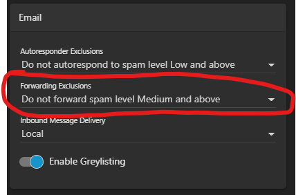 THX Robert, It was the spam level of the message and the corresponding Forwarding Exclusion (Domains > Configuration > Email)