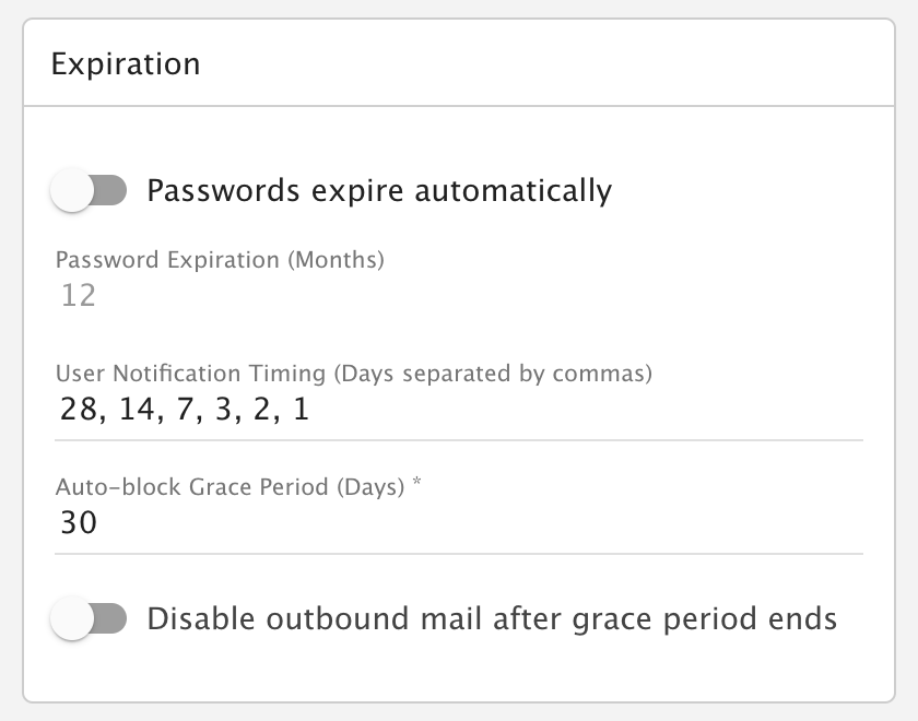 Currently the password expiration feature is server-wide, this works if you are a single company or single domain and want to implement this for all your users. However, being a hosting company and having multiple tenants, a server-wide policy like this may not sit too well with some customers.