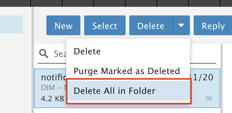 We have had a number of users select a message and then select "Delete All in folder" thinking it will just delete the message they selected, but it ends up deleting everything in that folder.