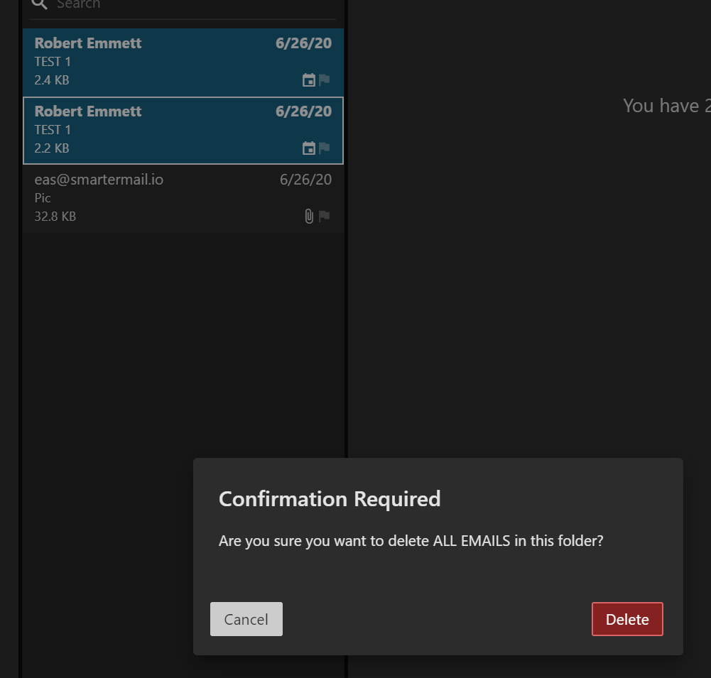 What we need is an additional pop-up confirmation like: "Are you sure you want to delete all messages in this folder?" and a Yes or cancel button.
