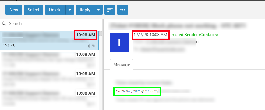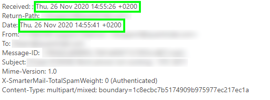 As you can see above, the date that appears in Webmail is today at 10:08 AM, when in fact the mail has been sent by the system (and received imediatelly, it`s a local system) on 26.11.2020 @ 14:55 PM