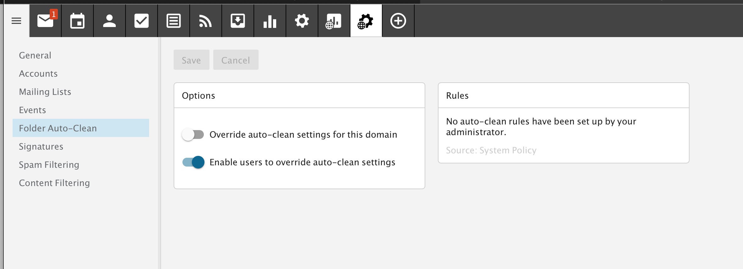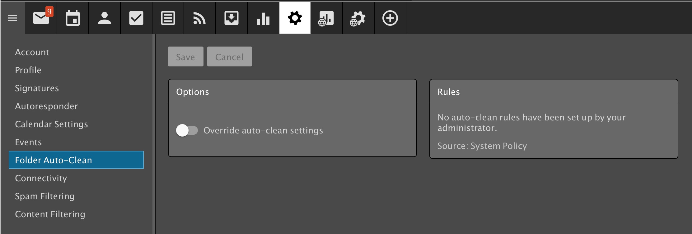 Her Microsoft installer is telling her this is a problem with her mail software platform, Smartermail. We have no rules setup for her domain or her account that would be auto-archiving or auto-folder clean in these two places: