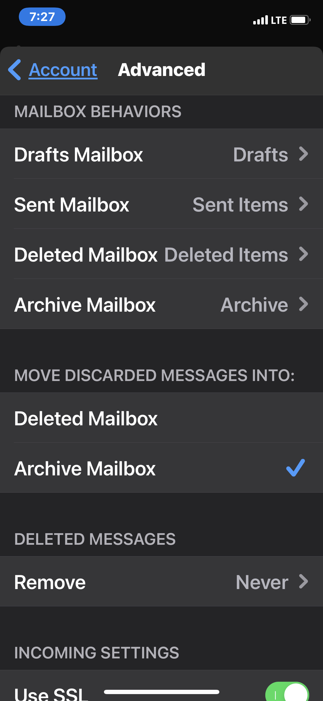 No one else in her office has this issue. If something is marked deleted in their Outlook, it sits in their for months without being permanently deleted.