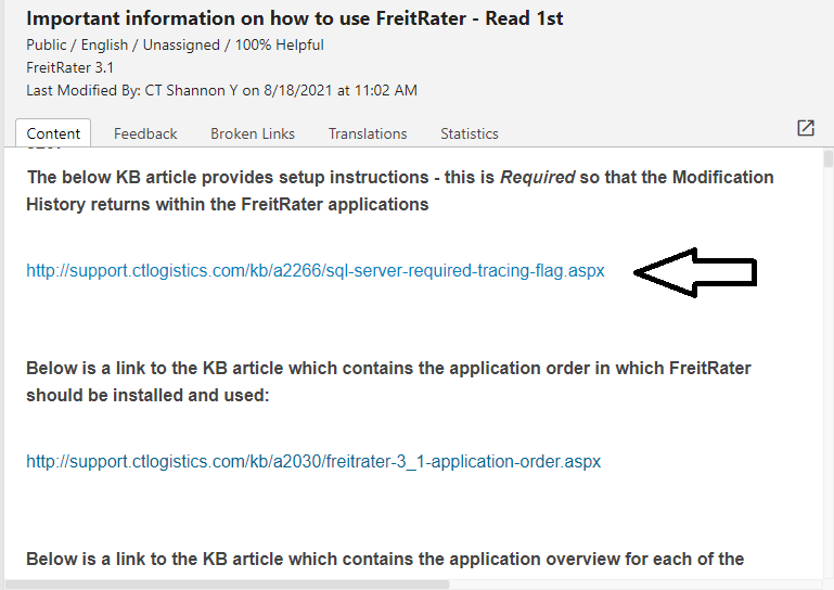 My user is an administrator and she is within the KB article section.  When she clicks on the below link: