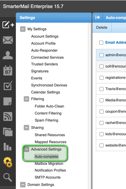 In short, I just cannot location it via SmarterMail It used to be in Settings -> Advanced -> Auto-complete