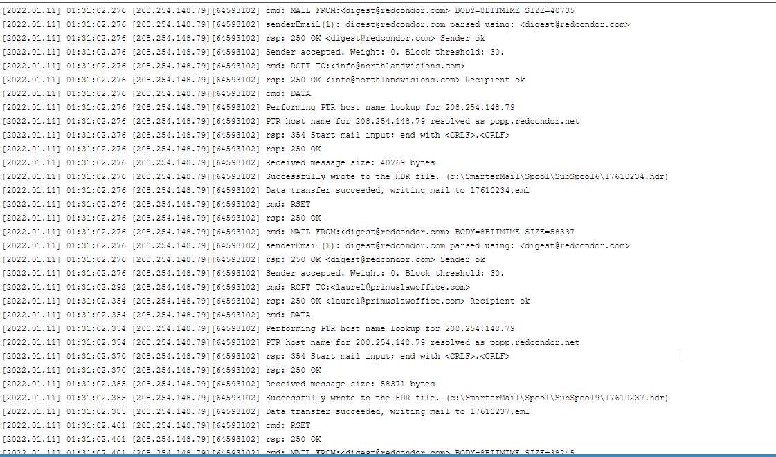 I would EXPECT that every message gets a unique message id. And they appear to get a unique name for their .eml file that is produced The Message ID duplicating really really slows down troubleshooting processes for us. I can understand if eventually that ID must wrap and start over. But the same one being issued to multiple messages all within the same second? Makes no sense to me.