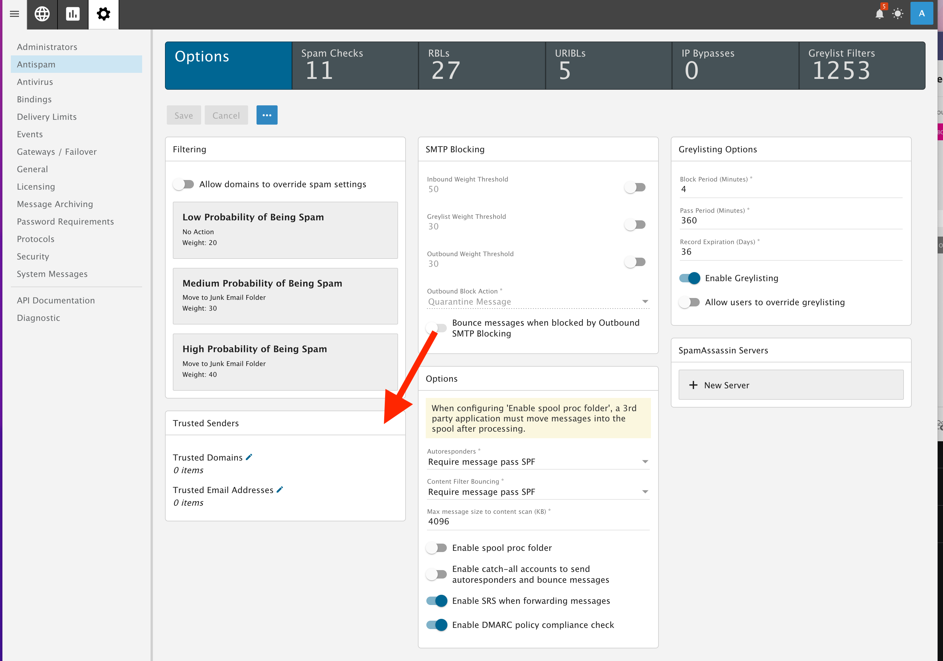 Is it possible to configure trusted senders globally?; because in the help it only mentions this configuration at the domain level.