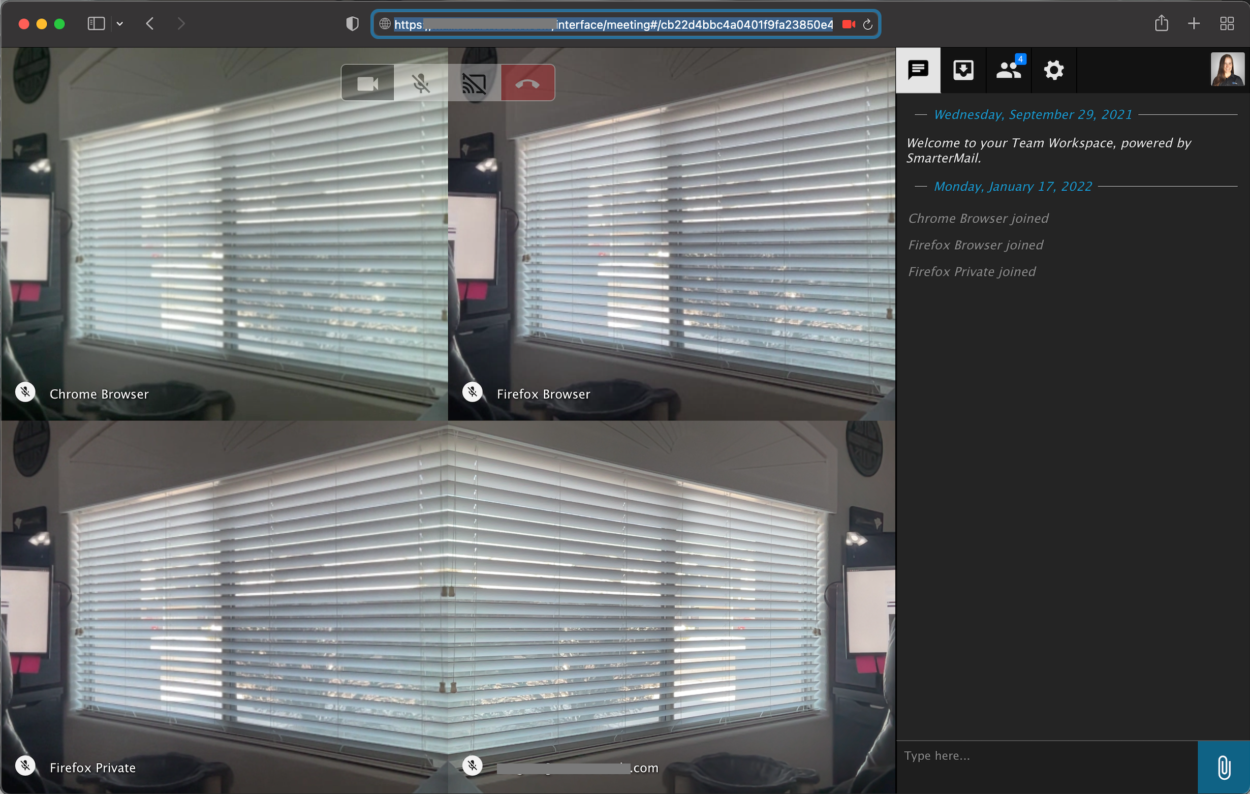 1.) Team workspace is not really usable in Safari browser on a Mac, it only shows your own camera.