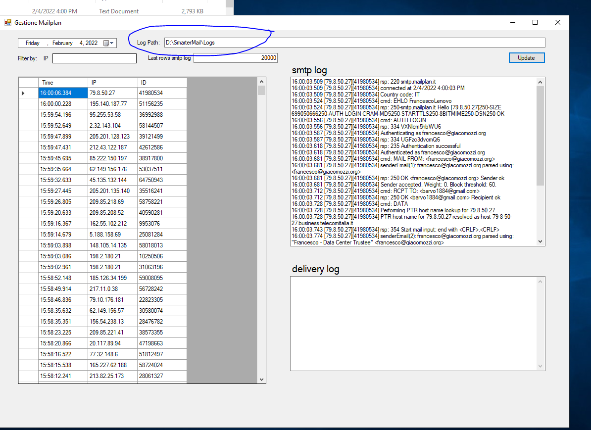 Some time ago I proposed to the smartermail development to improve the log, or rather the visualization of log information, especially for smtp sessions. In particular, thanks to experience with other mail servers (e.g. icewarp), providing assistance in real time to a user who is unable to send and / or who does not receive or that his recipient does not receive, it is difficult with smartermail while it is very simple. with other mail servers
