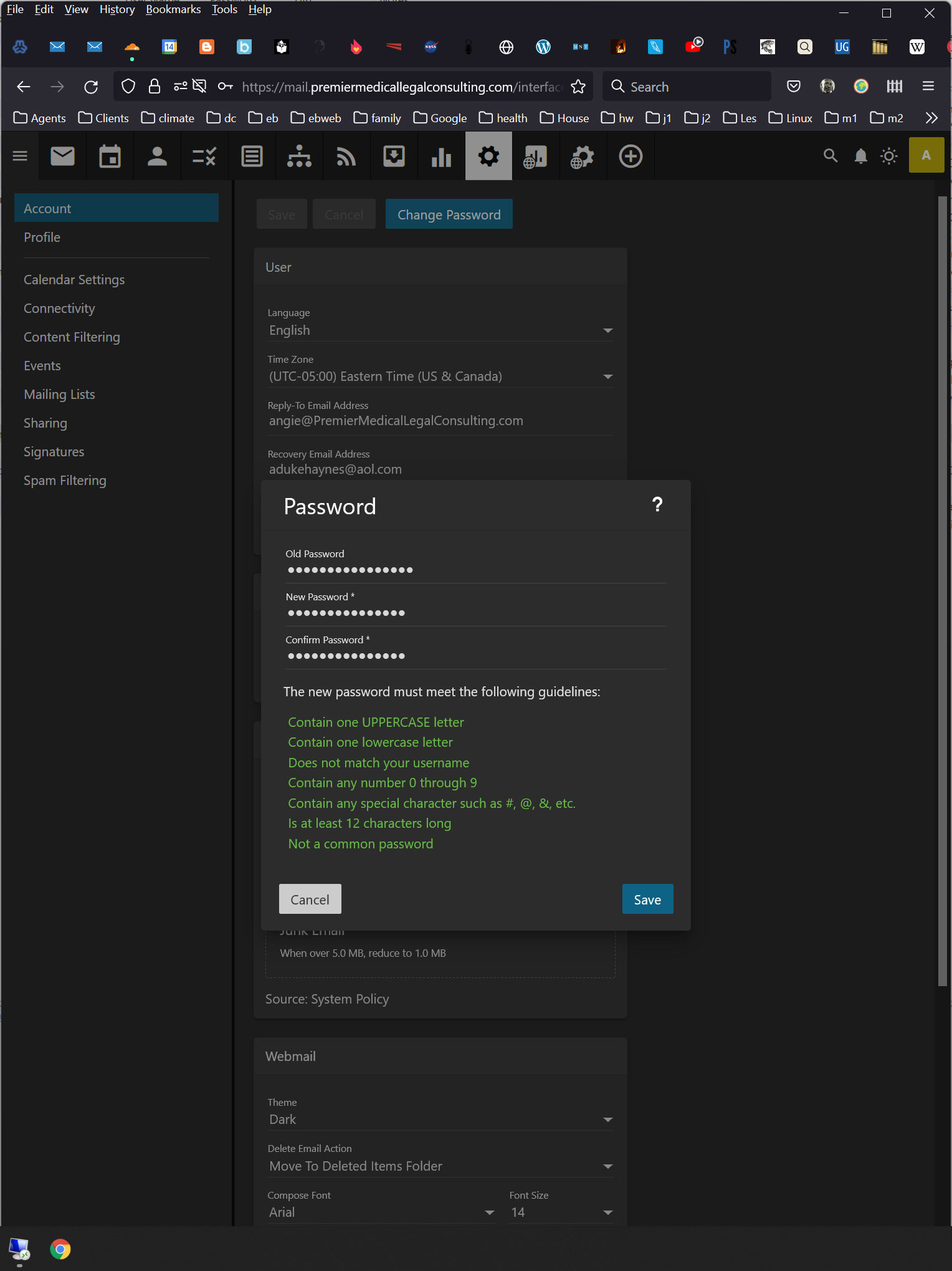 Unable to save password in domain mail.premiermedicallegalconsulting.com