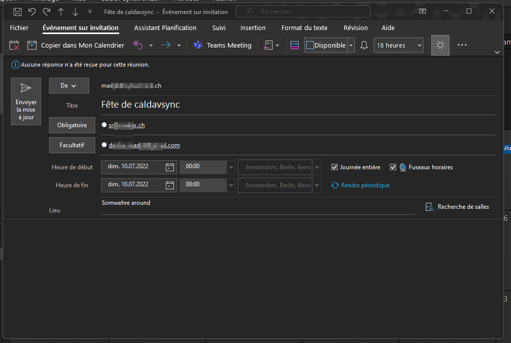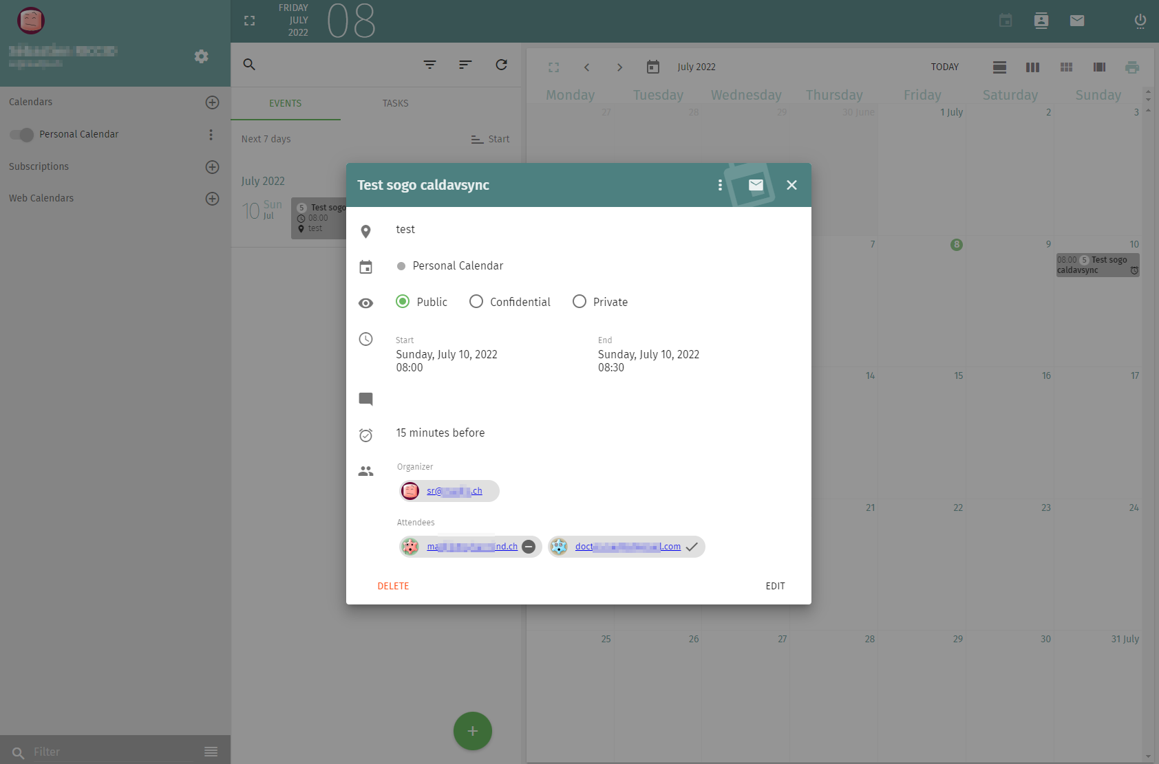 Just wanted to add that I tried the same thing but against a Mailcow server (using SOGo's DAV endpoint and all seems to work correctly with CalDav Synchronizer (inviting attendants, confirmations, etc).