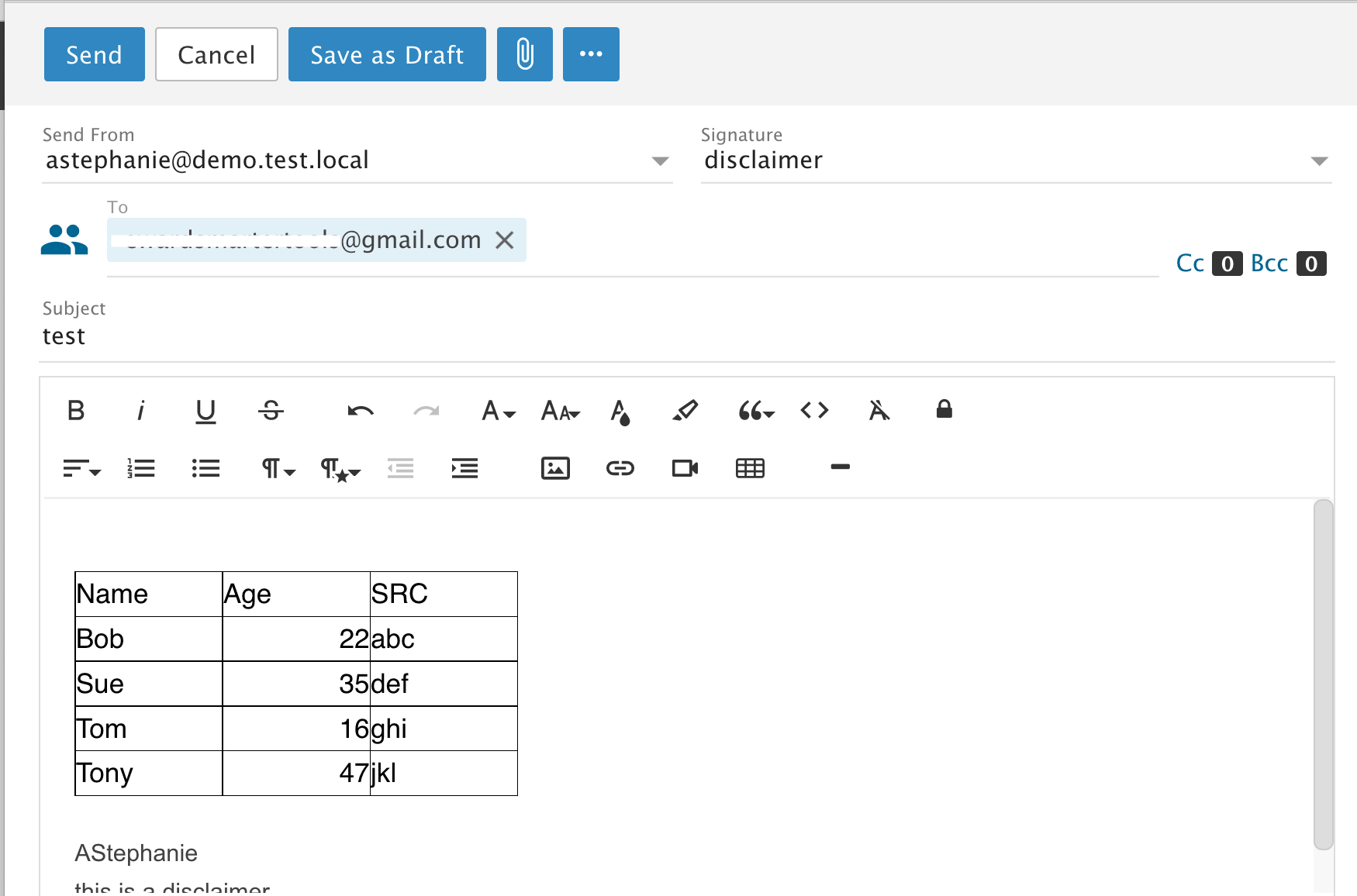 I'm not sure which version of SmarterMail you are using but you should be able to set borders in the table element and change the columns alignment,