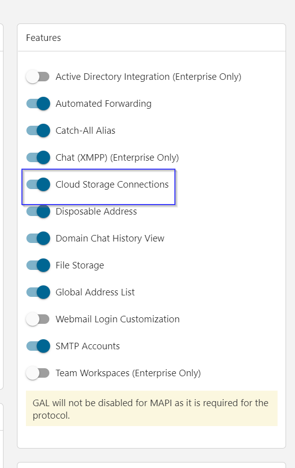 After this, you need to go to webmail. Then click settings->connectivity->New Provider in the Cloud Storage Connections card. After this just follow the prompts and allow the unverified app.