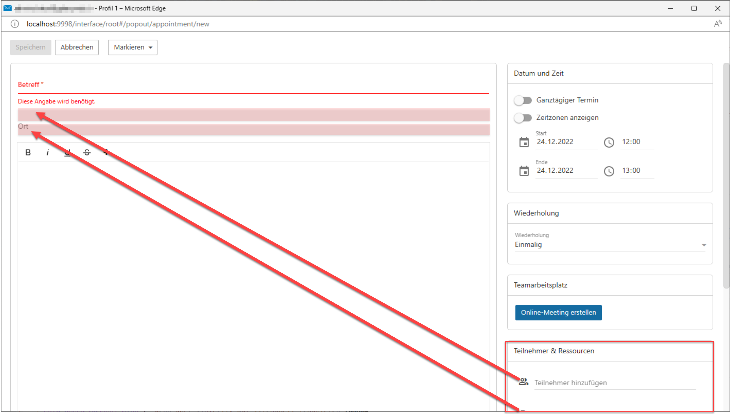 But, during testing I have sent calendar appointments devoid of their recipients a handful of times because I didn't see the attendees listed near the top. This is ultimately a flow issue on my part, but I believe the interface could make this a little easier for users.