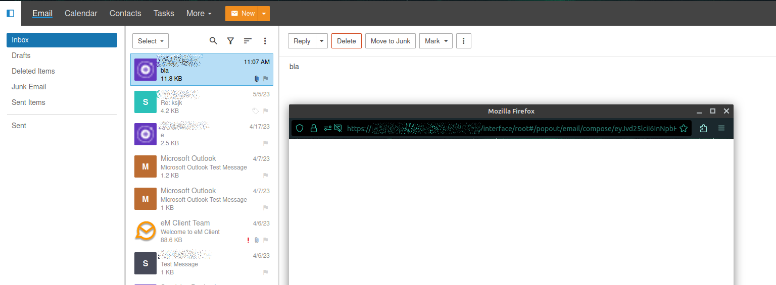 But, there are some issues with the angularJS, which make the webmail interface unusable. The New e-mail window pops-up blank (the same happens when you click on Reply). The message heading is not visible (sender, recipient, date and other info). There is no download attachment option/button.