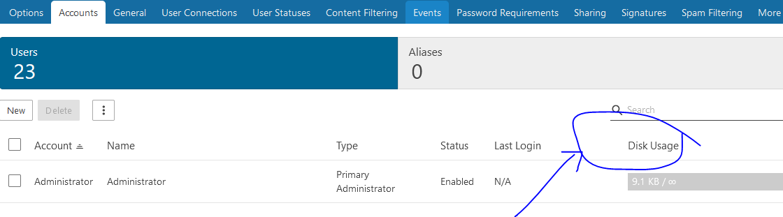 Disk space will be able to be sorted on Domain and Users page in an upcoming BETA build.