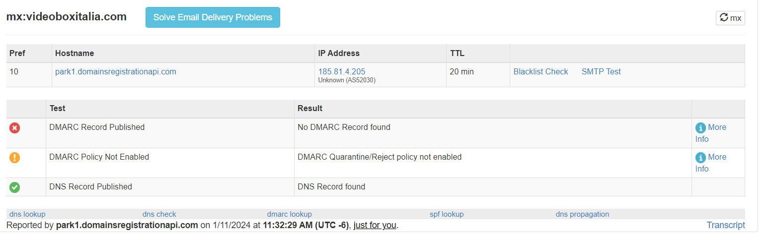 [2024.01.04] 00:30:38.693 [26911768] MXRecord count: '1' for domain 'to.co.uk'
