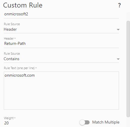So I was expecting the system to assign spam rating of 20 for any email that had a Return Path that contains: