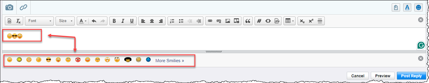 I am more looking for a change in the tool use to reply to thread in Smarter Track that will already include emojis like the screenshot below from a popular forum software.  The idea is for the users to be able to insert emojis by just clicking the emoji as shown below.