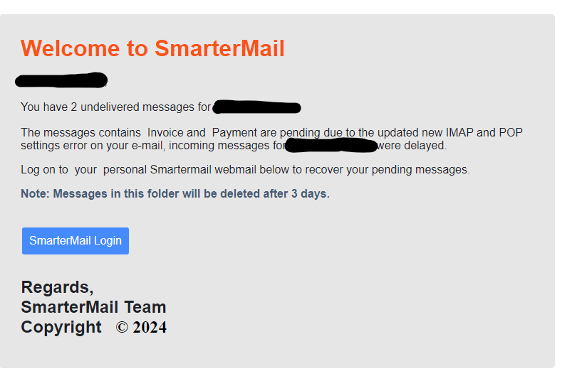 which makes it look very much like a real Smartermail sign in screen fooling the users.