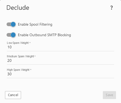 This example makes it even more clear what is happening. Declude-Scan scores a 22 weight. SmarterMail-Spam scores a 15 weight. Declude-Scan+SmarterMail-Spam = 37 which is indeed reflected in the SmarterMail-SmartHostSpamWeight of 37. However, all that SmarterMail Gateway is passing off to the primary SmarterMail server is the SmarterMail-TotalSpamWeight and not SmarterMail-SmartHostSpamWeight. Maybe these calculations were reversed in recent versions, or the wrong header is being parsed?