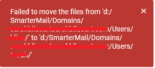 You should only need to delete the alias from Domain Settings>Accounts>Aliases, then complete the rename of her main account. The error you're seeing could hint at files being scanned by an antivirus or backup solution preventing them moving properly.
