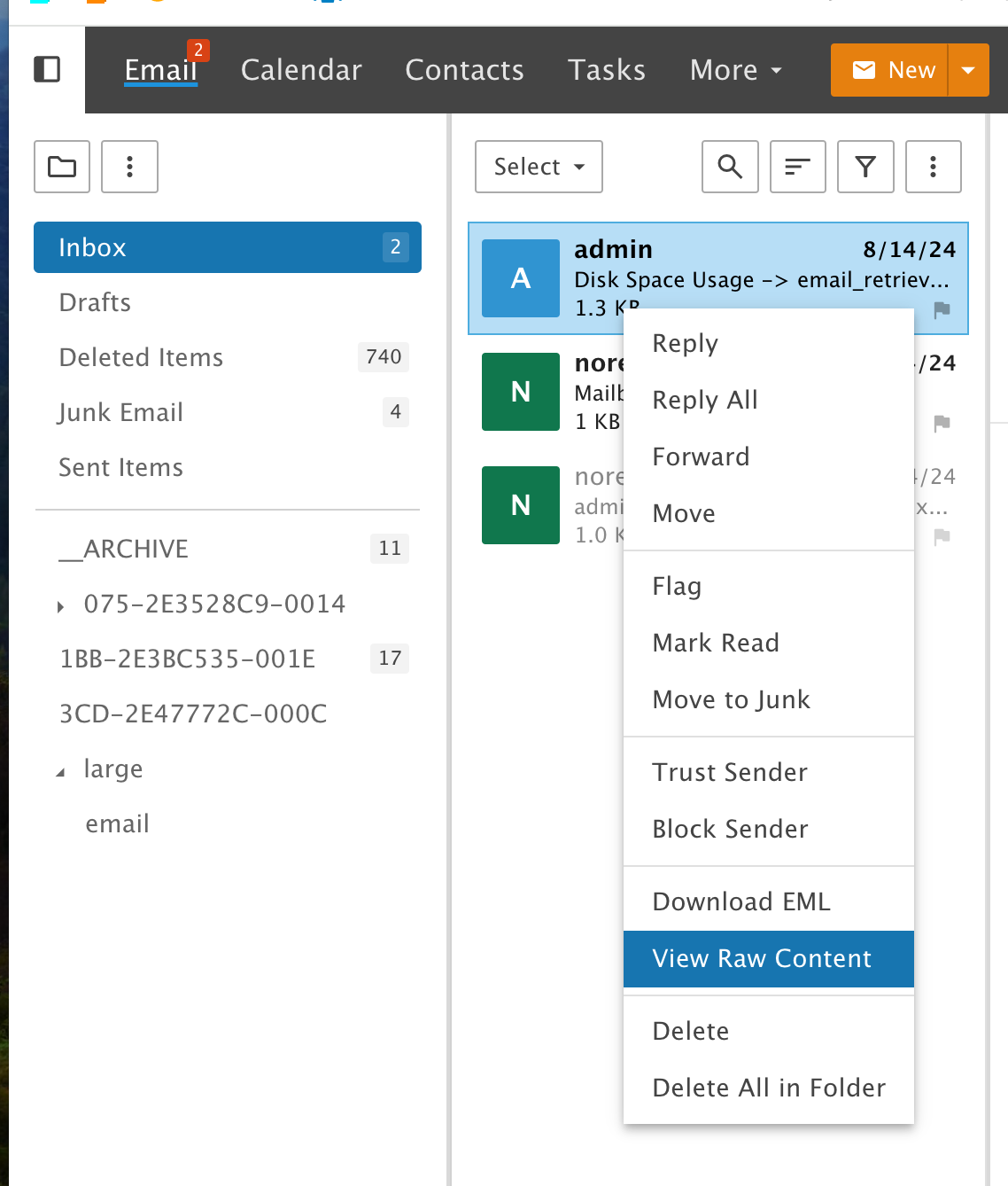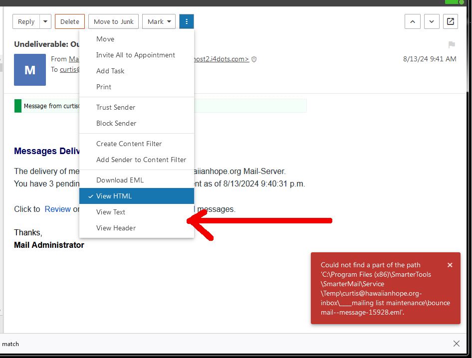 And, the "Download EML" seems to be broken, I get an error every time I try it.