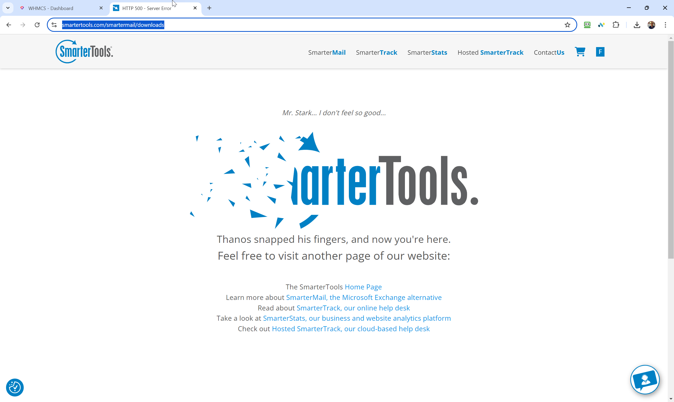 FYI your website is giving a 500 error page when i visit https://www.smartertools.com/smartermail/downloads
