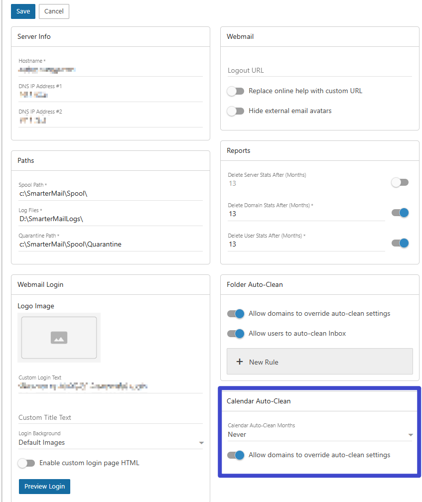 Where is the setting that allows a user to save all calendar events and completely disable auto-clean? And where is the setting to disable auto-clean for a domain?