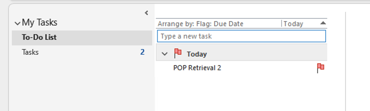 So I want to be clear, we're talking about items that show up as To Dos in Outlook which, to my mind, are different than actual Tasks, even though To-Dos can show up in a Tasks list. And are any of these flags set using Rules or anything within Outook?