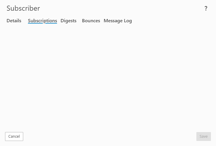 That tab should have the information you described. I was able to replicate an error opening the Subscriber modal, and I've added a bug report to our tracking system.