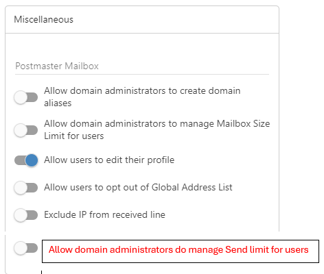 Currently, a domain administrator user can change the sending limit, thus burdening the entire domain.