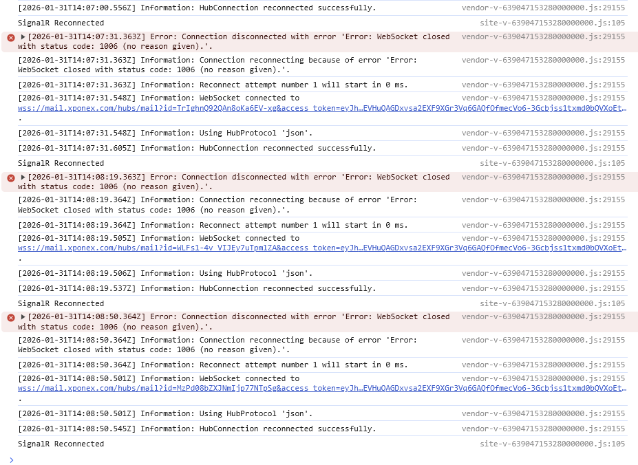 The browser's Developer Tools>Console area might shed some light on what is failing to connect. You'll want to open that then refresh the page and let the error present itself again.