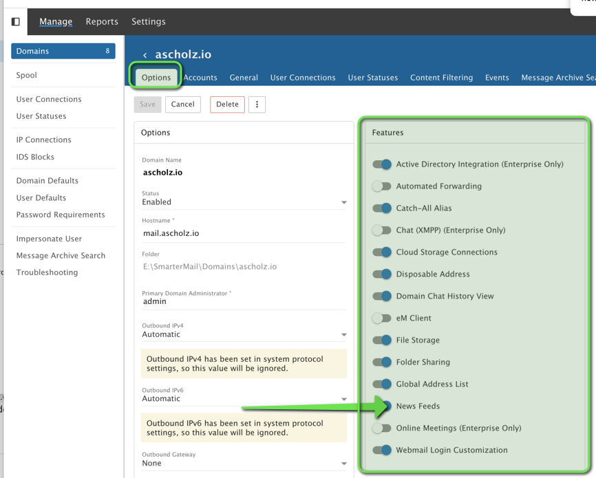 Currently, the News Feed option can not be disabled in the settings. Cloud Storage can be disabled at the domain level but not per user. To disable it at the domain level you will need to go to manage -> domains -> {selected_domain} -> option [tab] -> features [card].